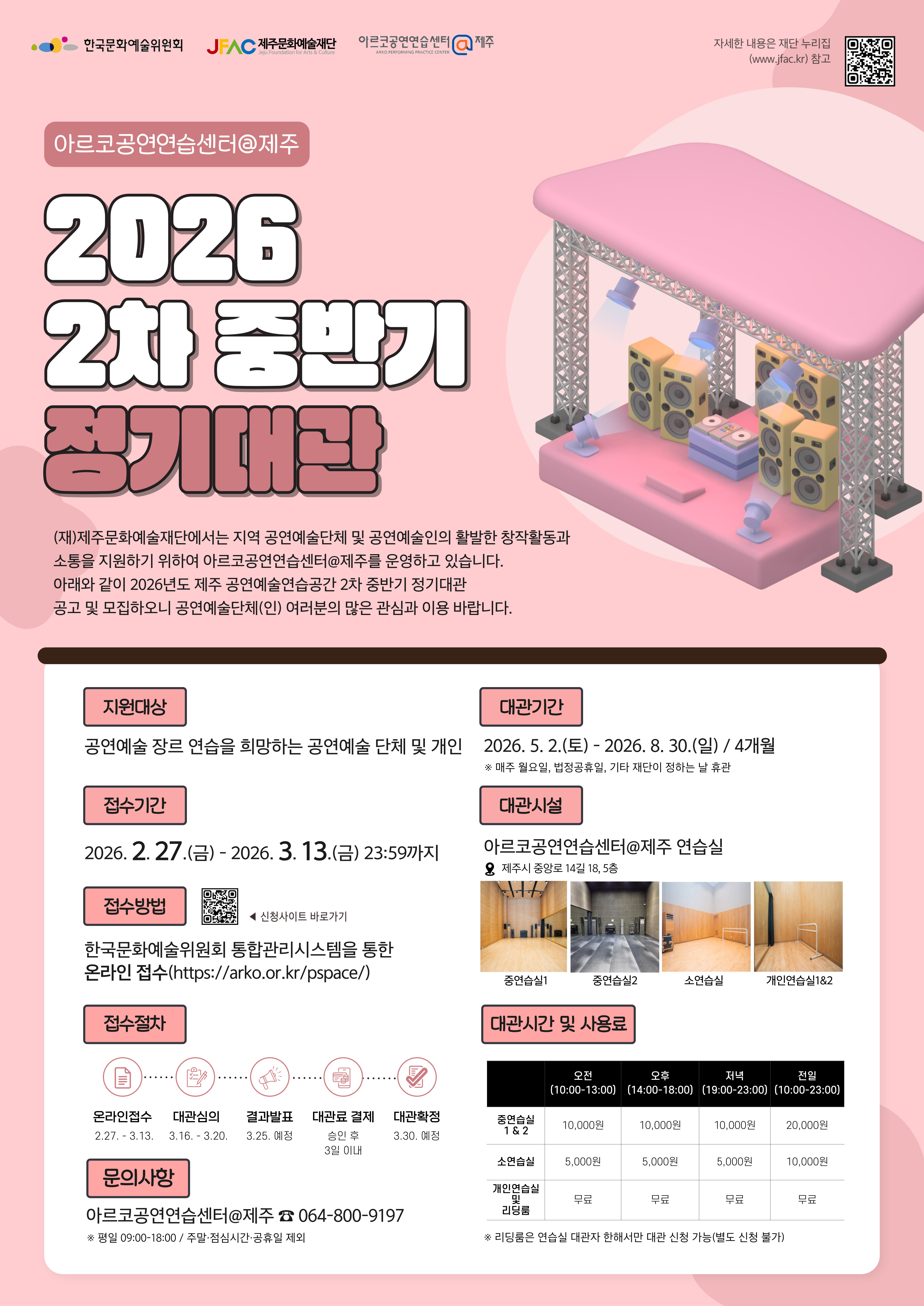[제주] 2026년 2차 중반기 아르코공연연습센터@제주 정기대관 공모