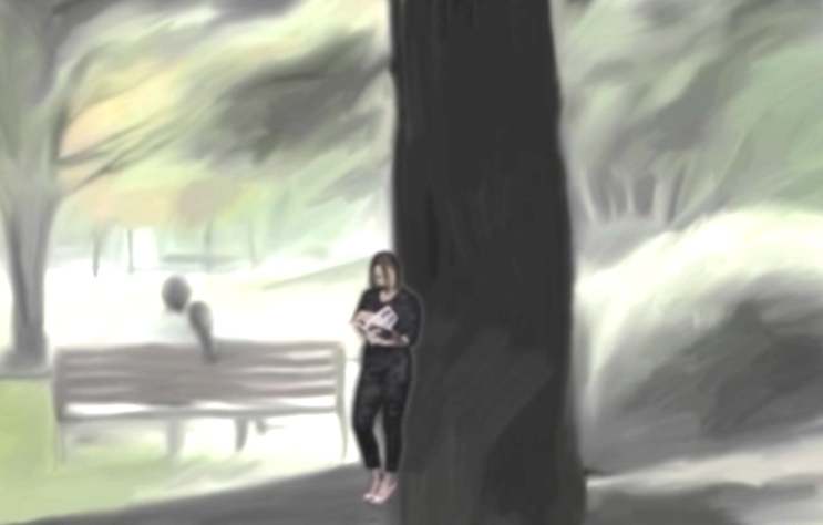'Landscape in My Room' depicts the artist’s room through the window of a television monitor. This work overlaps images of the artist with the scenes of television dramas the artist often watched after recomposing them as a panorama. In the era when the border between the public and the private becomes blurred, the artist creates her own space through a combination of ‘her own space’ watching television dramas and ‘the public space’ of the mass media.