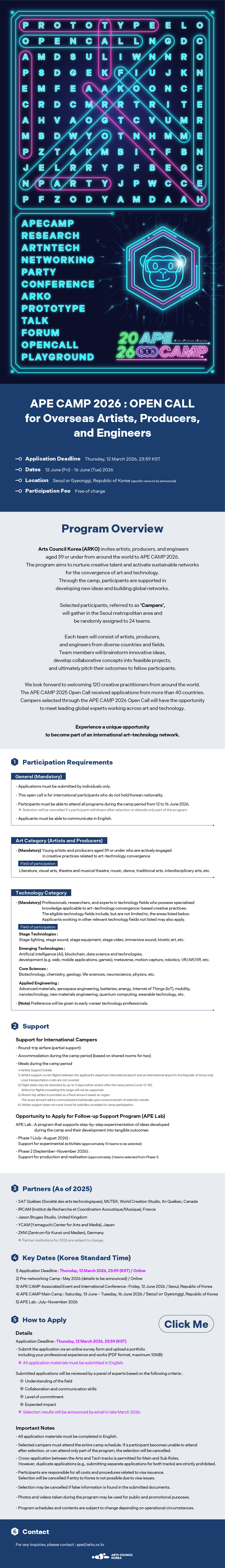 APE CAMP 2026: OPEN CALL for Overseas Artists, Producers, and Engineers