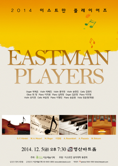 1999년 봄, 클래식 음악 명문인 이스트만 음악대학 동문들로 구성되어 2004년 첫 동문 음악회를 시작으로 매년 12월 초에 연주회를 열고 있다. 몇 년 전까지는 ‘이스트만 동문 음악회’라는 타이틀로 열어오다가 최근에 ‘이스트만 플레이어즈’로 바꾸어 특정 주제를 갖춘 연주회를 하고 있다. 앞으로 ‘이스트만 플레이어즈’는 연주자에게 좀 더 많은 연주 기회를 제공하고자 겨울에 여는 정기연주회 외에 봄철에 신인음악회를 하나 더 마련할 계획을 가지고 있다. 국내 작곡가에게 곡을 위촉해 한국 작곡가의 곡들이 자주 연주 될 수 있도록 하고, ‘찾아가는 음악회’ 등을 열어 ‘이스트만 플레이어즈’가 사회에도 기여할 수 있는 단체로 거듭나려고 한다. <br />