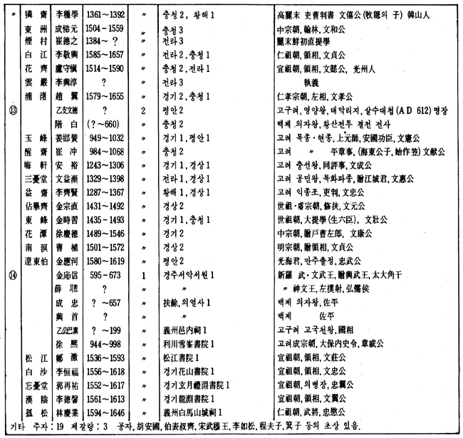 <표3>에 나타난 18명의 선비는 모두 초상의 대상 인물로 삼아 마땅한 분들이다. 자세히 살펴보면 조금씩 결함도 있고 기대 만큼에 미치지 못한다고 생각되는 점이 없지 않지만 이만한 큰선비를 조상으로 가졌다는 것도 다행이 아닐 수 없다. <표1>에 나타나 있는 전국의 초상 수는 평균 8.5곳이어서 높은 존경도를 나타내나 설총은 1곳이요 송시열은 22곳이어서 큰 차이를 보여준다.