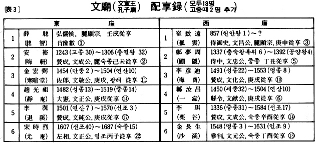 문묘란 공자의 시호인 문선왕을 모신 묘를 지칭하여 유교를 국교로 삼았던 조선시대에 공자묘에 우리나라 큰 선비로 모셔진다는 것은 최대의 영광이며 국가적 국민적 존경의 표상이 되었다.