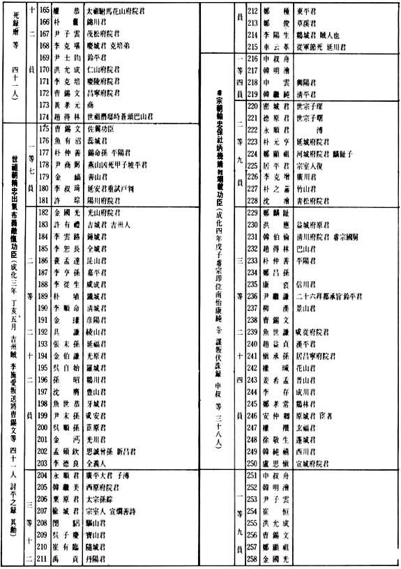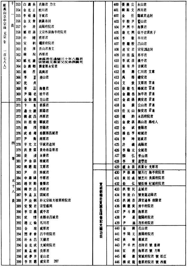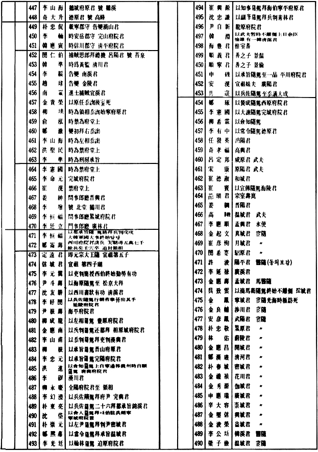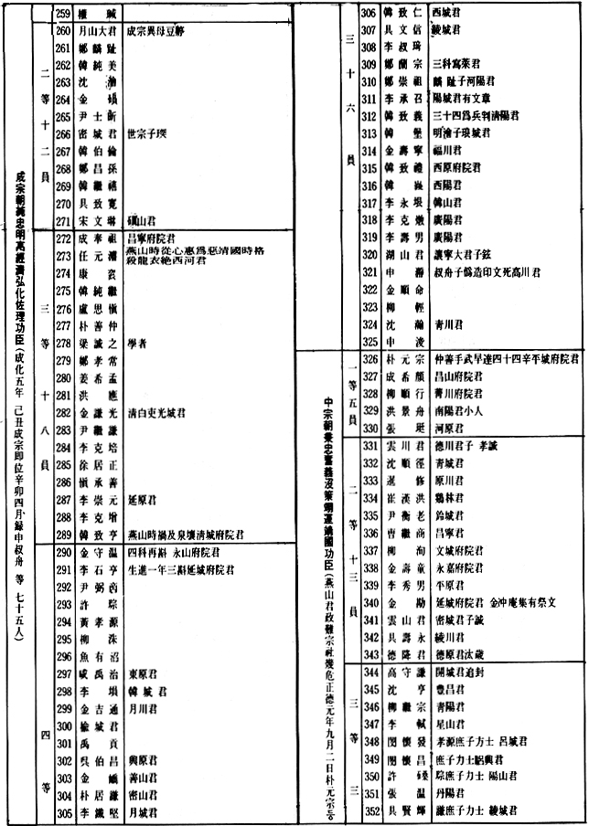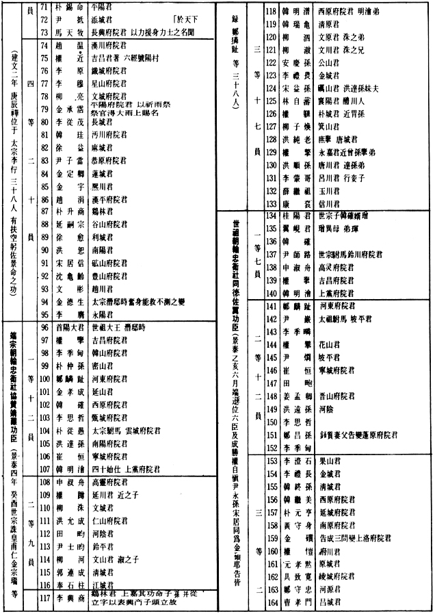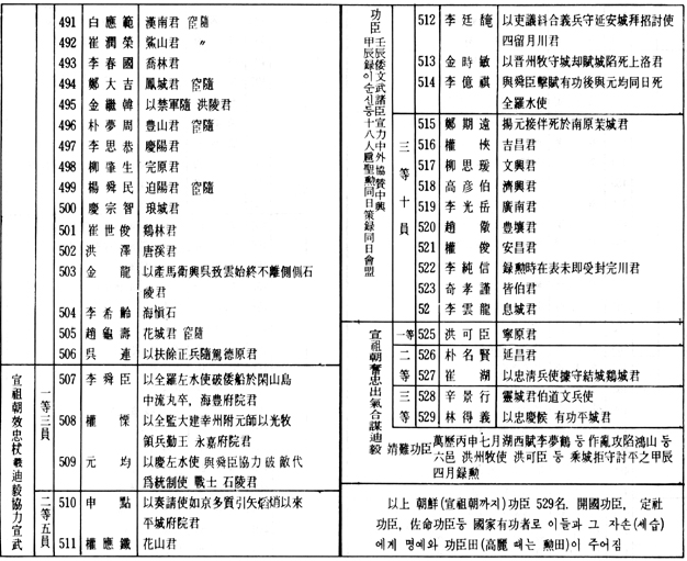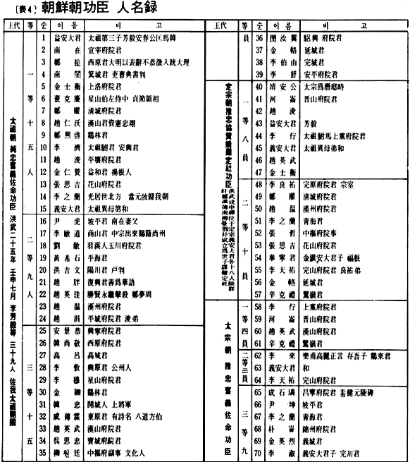 <표4>에 있는 공신과 영조 때 까지의 공신은 총597명으로 아래와 같다.