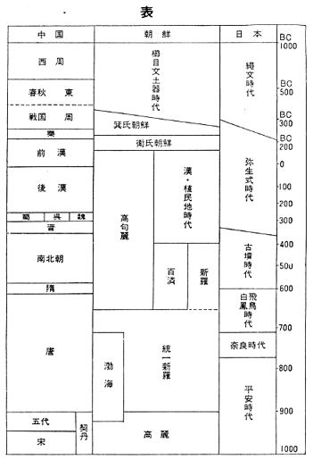 전장에서 설명한 고구려 벽화에 나타난 우리 나라의 기본 복장과 일본복식의 구체적인 동일 양상을 찾아보도록 한다. 참고로 이 시대의 연표를 보면 다음에 나오는 표와 같다.