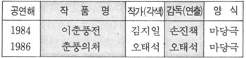 또 극양식으로의 재창조의 경우를 보면 사설이 지닌 서사성이나 풍자성을 표출하는 데 촛점이 주어졌기 때문에 연극으로의 행동화된 갈등의 형상이 상대적으로 약화되고 있다. 그 결과 이야기를 들려주는 쪽보다는 상황을 보여주고 정감을 일깨워주는 쪽으로의 전환적 개발이 요구된다. 또 70년대 이후에 성행한 마당놀이화에서는 이런 극화의 본질이 개인놀이의 한계성을 극복하고, 모두가 함께 참여하는 공동체의 놀이이며 의식이라는 양식적 개성에 치중한 나머지, 원작이 지닌 주제의식의 일탈이 너무 강화되는 경우가 많다. 물론 反主題化에 의한 고전의 재해석이 창조적 재현의 한 길일 수는 있지만, 놀부의 인간상이나 뺑덕어미의 인간상을 통한 고전의 뒤집기는 그 한계를 지닐 수밖에 없다. 여기에 반하여, 서민의식의 확장이라는 측면에서, 방자의 기능확대 등은 원작의 주제에 애정을 두면서도 현대인의 공감을 획득할 수 있는 긍정적 모색의 한 예로 평가된다. 그러므로 고전소설의 본질에는 손상이 없이, 그 현대화에로의 길을 추구할 수 있는 건강한 재해석이 활발히 진행될 때, 우리의 삶을 함께 해온 마당극 속에서의 어우러짐이 굳건한 공감의 터를 마련하며, 신명과 새생명의 활력소를 쏟아내는 판의 어우럼이 될 것이다.