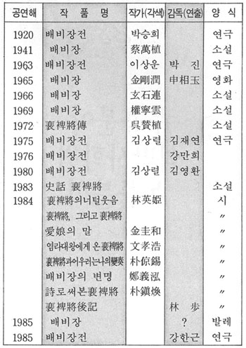 鄭義泓의 <배비장의 변명>에서는 독특한 골계적 미의식으로 고전적 의미의 손상이 없이, 그 의미의 위에 현대적 시의 감각과 서정의 표현미를 용해시키는 길을 열었고, 朴掠錫의 <裵裨將과 어우러는 나의 變秦>는 민족 분단의 비통한 아픔과 이념의 갈등이 자아내는 처절한 비극성을 새로운 해석의 바탕으로 삼아, 배비장전의 현대화에 기여하고 있다.