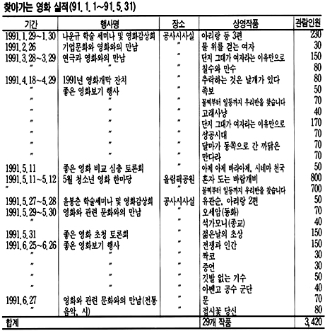 연극실적 (1990.1.1∼1991.6.30) <표1>